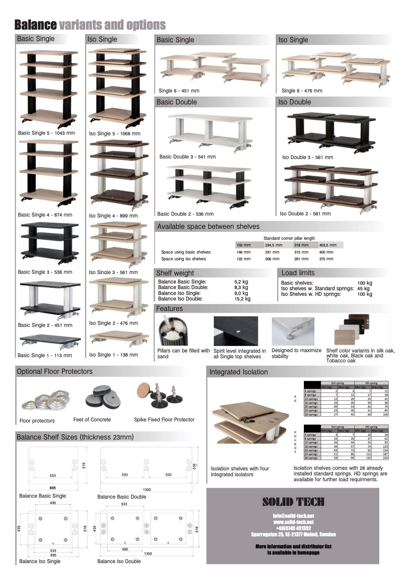 A Balance állványrendszert úgy fejlesztettük, hogy a lehető legkevésbé befolyásolja a hangzást. A rendkívül nagy stabilitását úgy értük el, hogy vastag, nagy fajsúlyú polcokat használtunk homokkal kitölthető alumínium saroktámaszokkal.