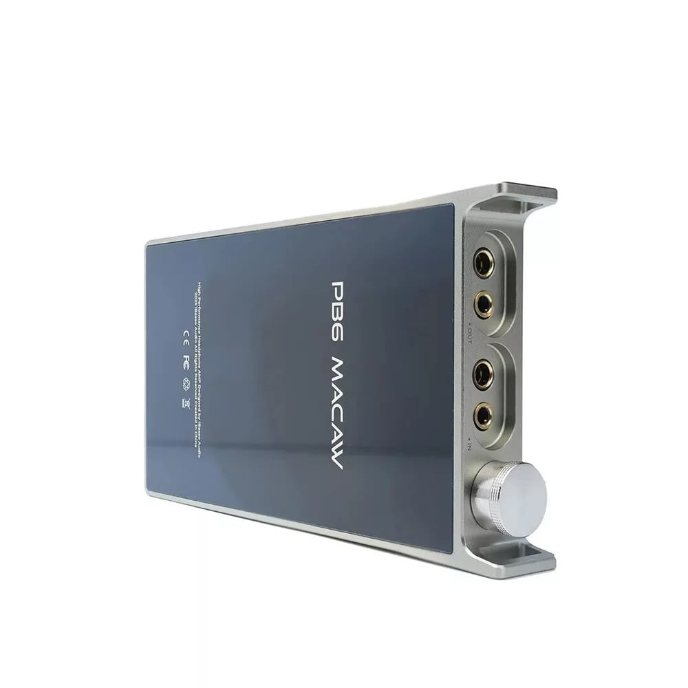 Az iBasso PB6 Macaw egy zászlóshajó hordozható fejhallgató-erősítő, amely asztali szintű teljesítményt nyújt a zsebben. Teljesen kiegyensúlyozott 4-csatornás architektúrára tervezve, négy katonai minőségű Raytheon JAN6418 pentódás vákuumcsővel rendelkezik. Kettős kimeneti módokkal (Tube és Class AB) gazdag, meleg harmóniákat vagy tiszta, dinamikus tisztaságot biztosít, az preferenciáktól függően. A 22,5 V-os nagyfeszültségű meghajtás bőséges torzítási küszöböt és robusztus hanghatást biztosít, míg a 32 Ω-os 2300mW + 2300mW kimeneti teljesítménye még a legigényesebb fejhallgatókat is könnyedén meghajtja.
